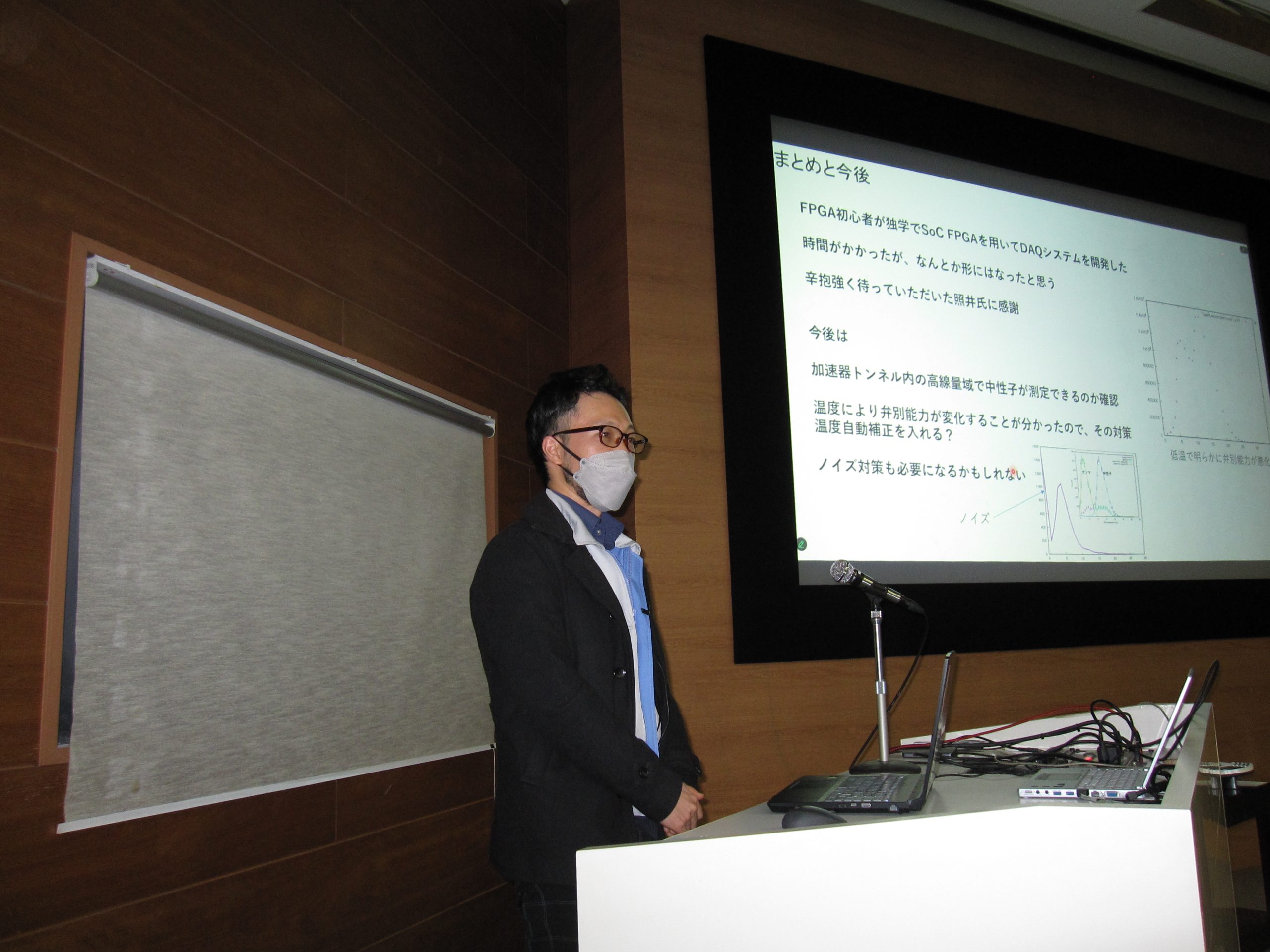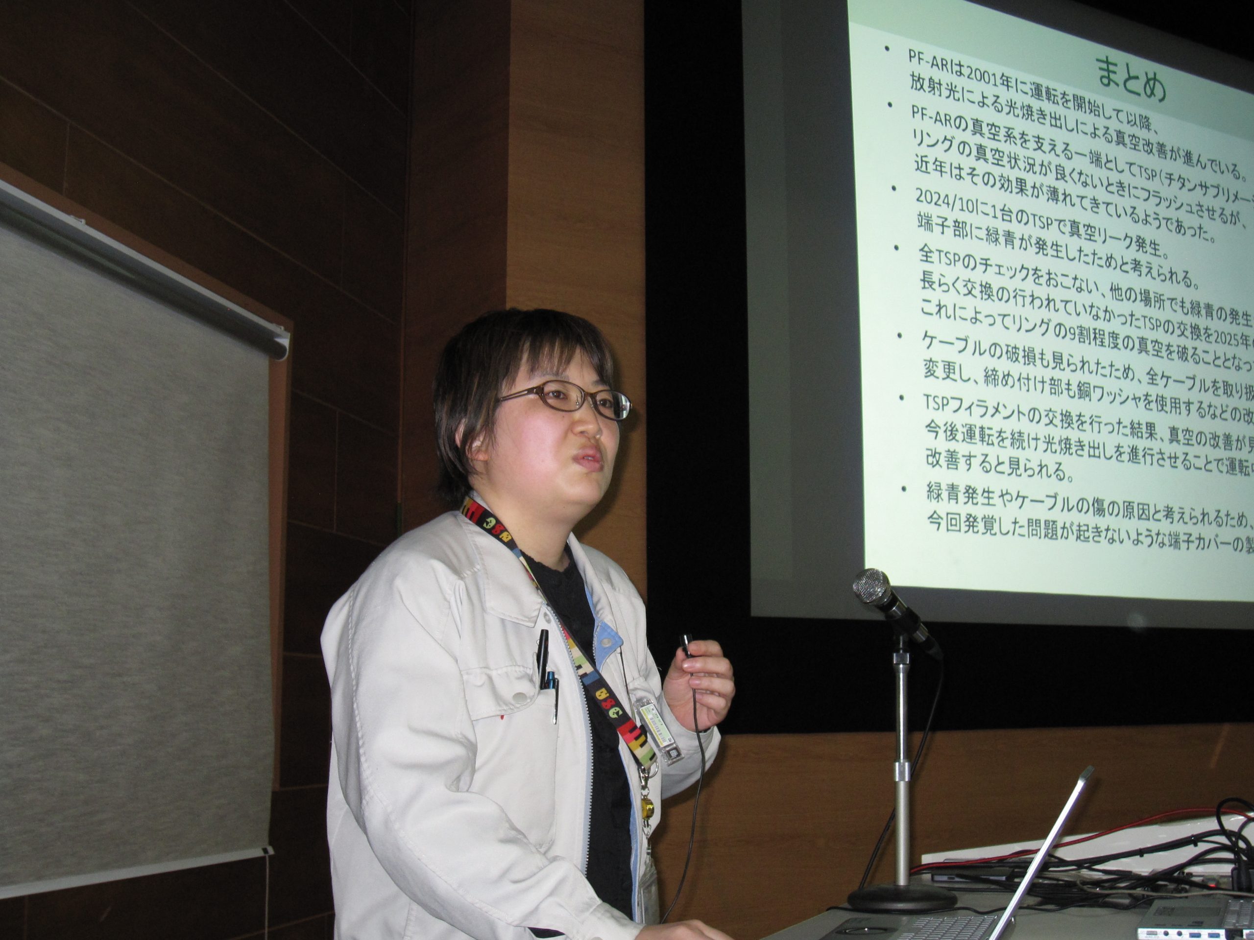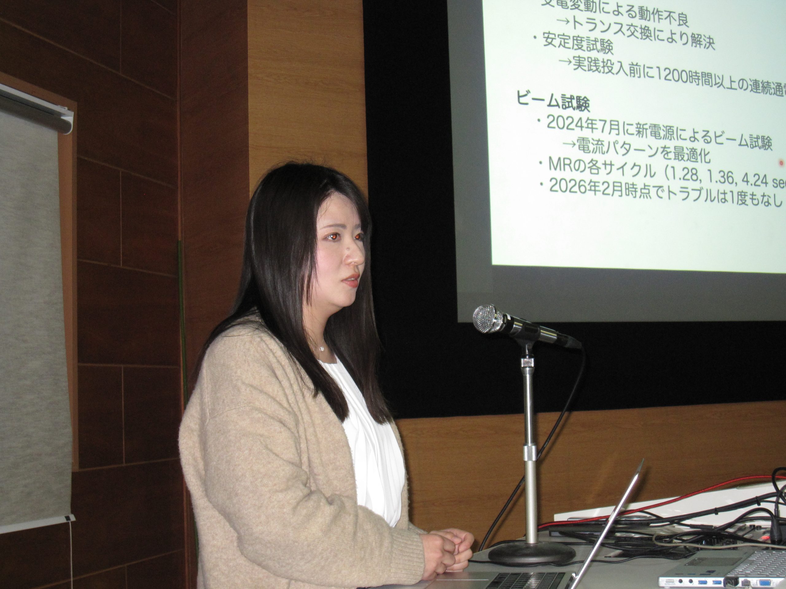 今回は比較的若手の技術職員が多く発表し、計5件の講演が行われました。内容は、電源や真空といった加速器を構成する上で重要な要素技術に関するものから、放射線測定技術に関するものまで、加速器研究施設の技術職員の業務の多様性を表わしているような発表となりました。質疑応答も活発に行われ、休憩時間や交流会終了後にも意見交換が続くなど、活気あふれる会となりました。
